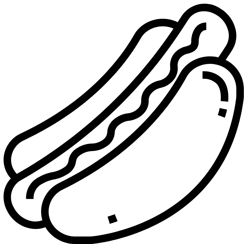 Hot Dog served on a bakery bun and topped with ketchup, mustard, and relish.